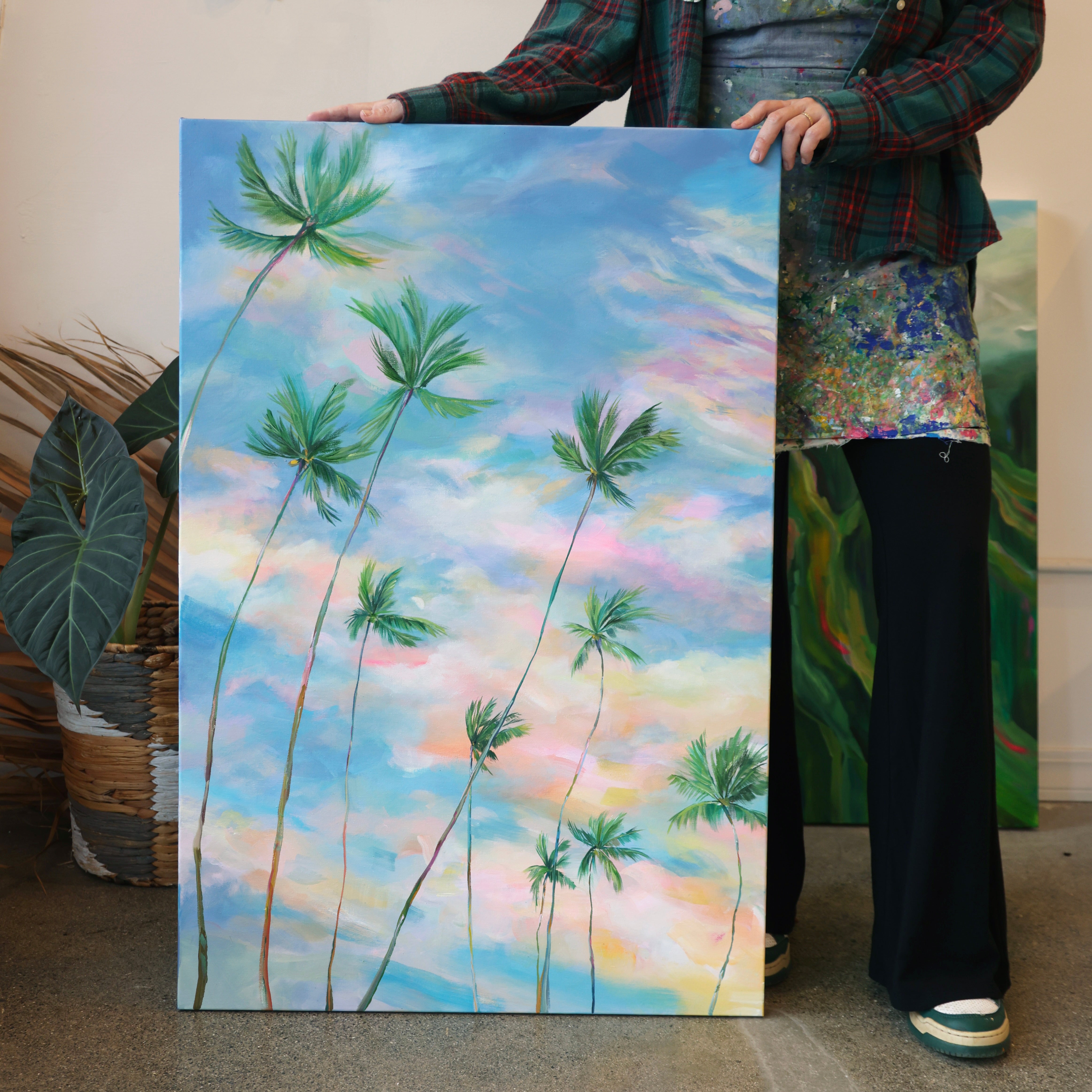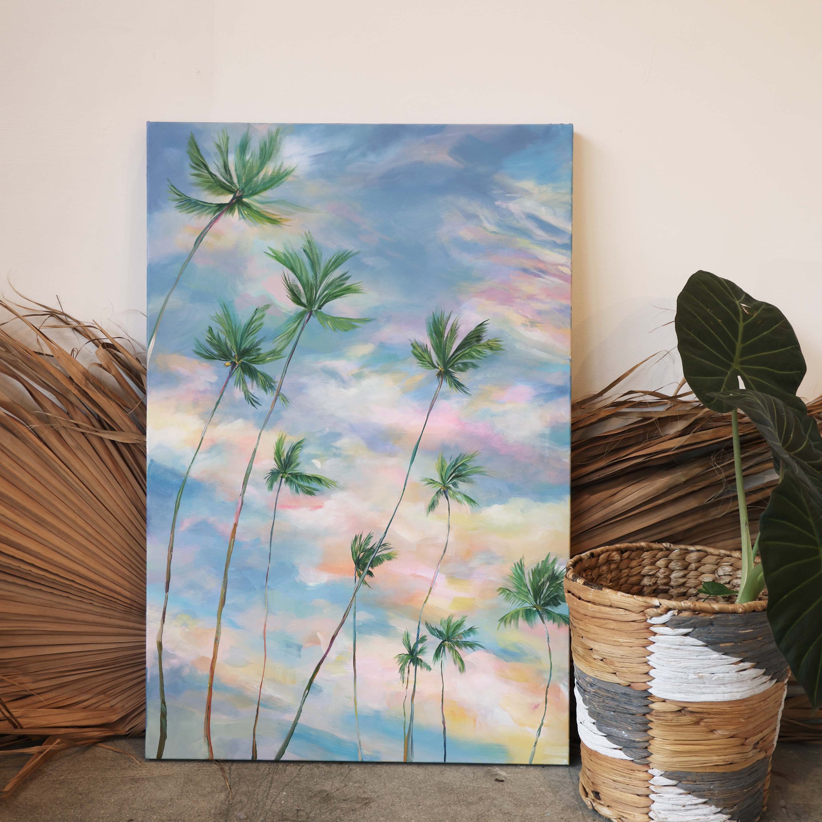 Based off of a photo I took during a beautiful evening spent at Kalamas Beach park in Kailua. The moon was shining through a gorgeous Kailua sunset, and the trees were swaying like they were dancing in the beauty of it all. This one was hard to photography, the colors are stunning in person.
