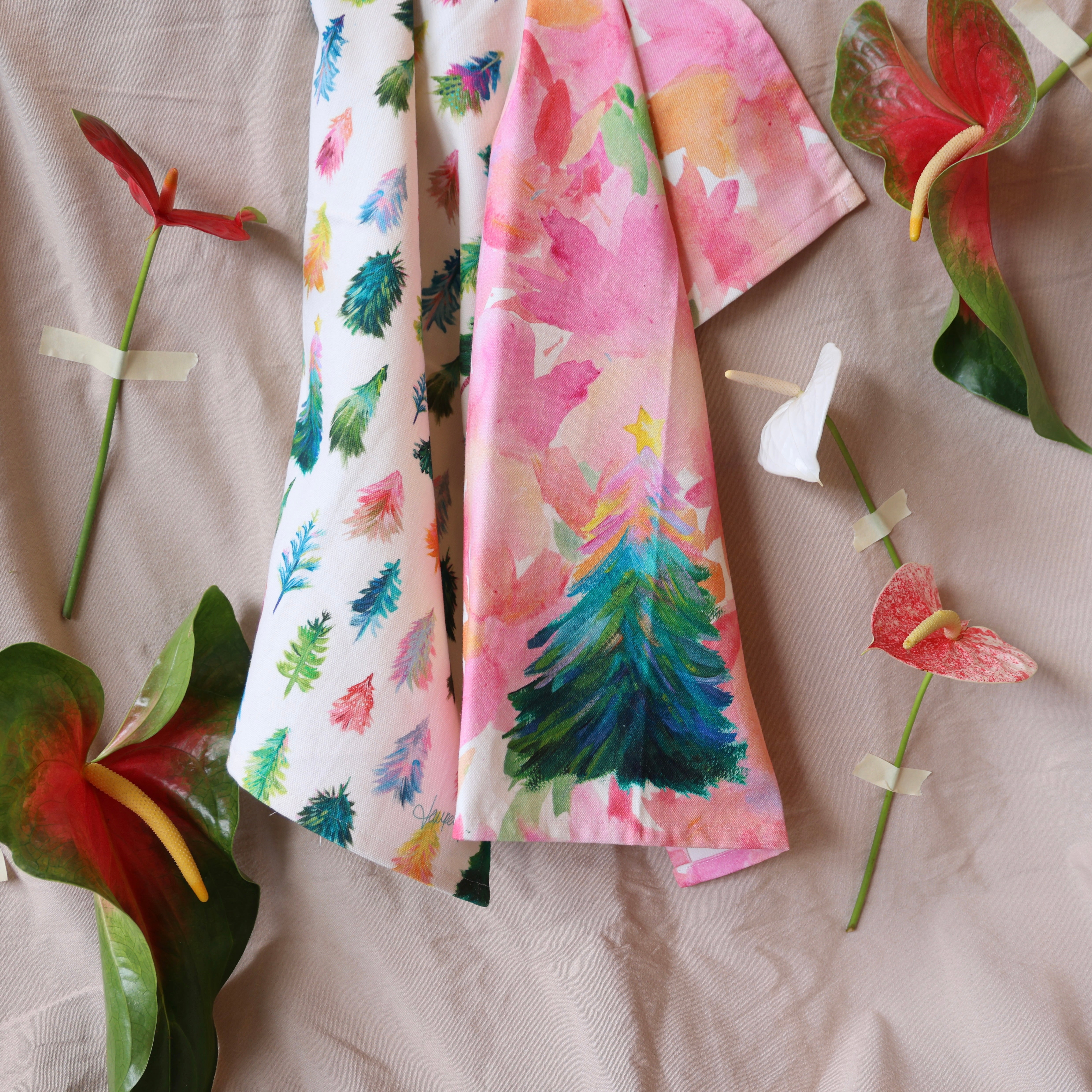Mix or match to bring a little holiday spirit to your kitchen with these beautiful tea towels.