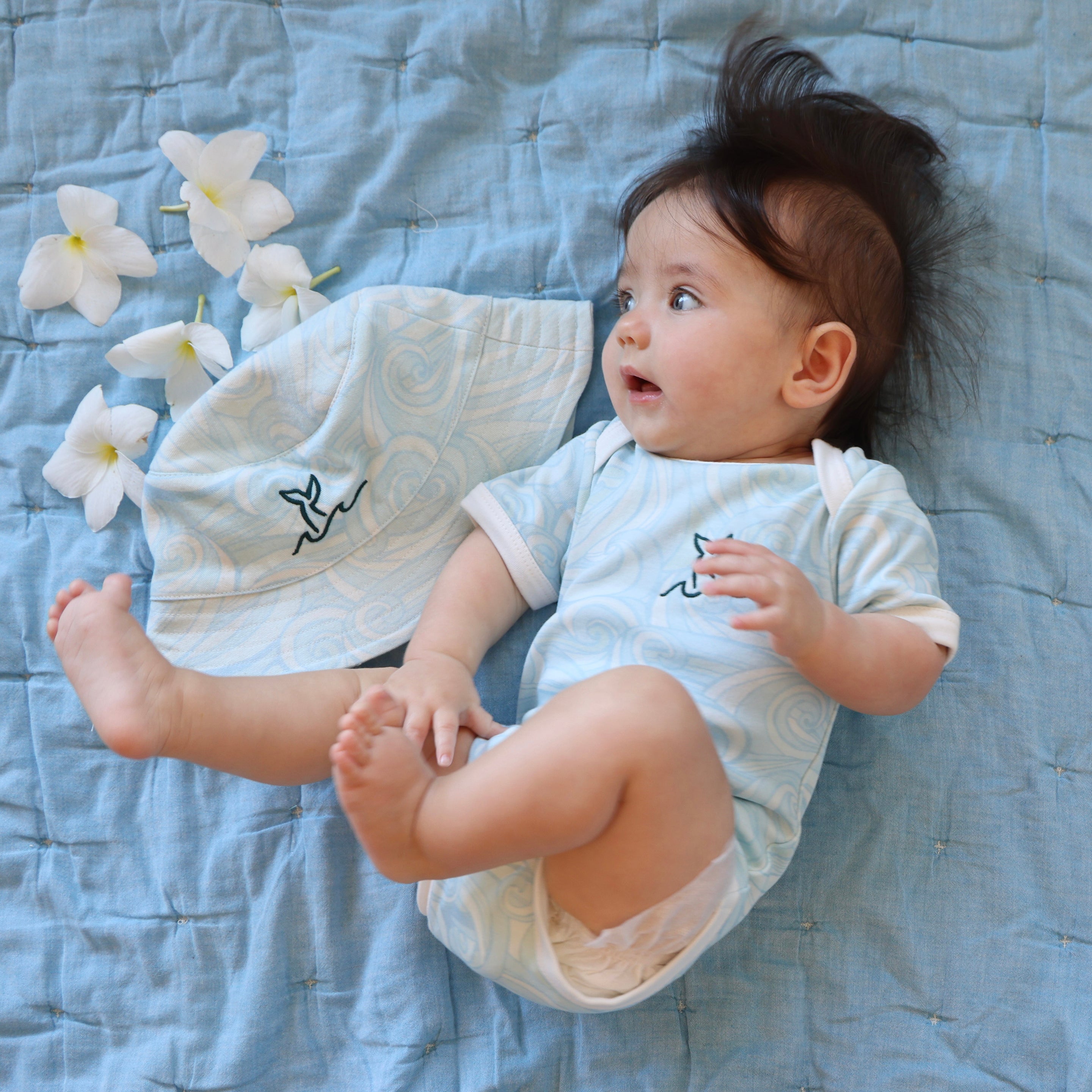 Designed in Kailua, created to make you smile. Super soft, easy to wash, and uniquely cute! They are not waterproof, but they hold up well when wet and wash and dry great. The size could be used from roughly 0 - 3 years, being a little big on babies and a little tight on toddlers.